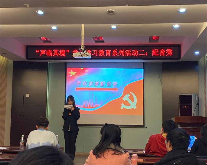 七支队伍依次入场为自己所选择片段配音,评委根据片段原声和选手发挥为其打分。现场气氛紧张激烈,选手们以真挚的情感,饱满的情绪为视频中的角色配音,如同容身其中,观众们也被配音氛围吸引,身临其境。《觉醒年代》《我和我的祖国》《建国大业》《红色家书》等一部部选段中,选手娴熟运用配音技巧的同时,针对不同的配音场景,奉献了声声铿锵有力的对白,不仅呈现着一幕幕经典影视作品,还带领观众们重温了红色岁月的点点滴滴,进一步加深了同学们对党和国家历史的了解,对初心、使命的感悟,筑牢了思想根基。经过一个多小时的激烈角逐,大赛决出一二三等奖和优秀奖。