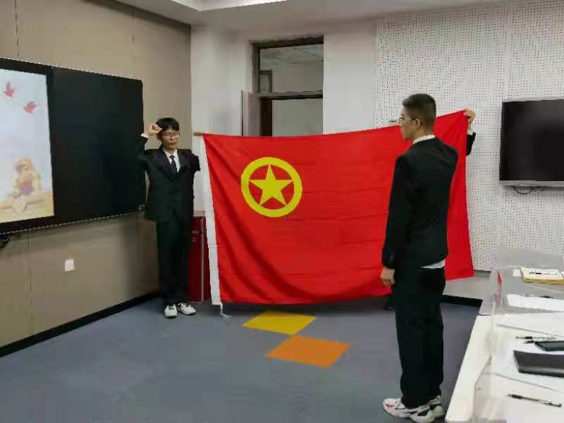 最后,全体参会人员面向团旗,举起右拳,庄严地重温了入团誓词。