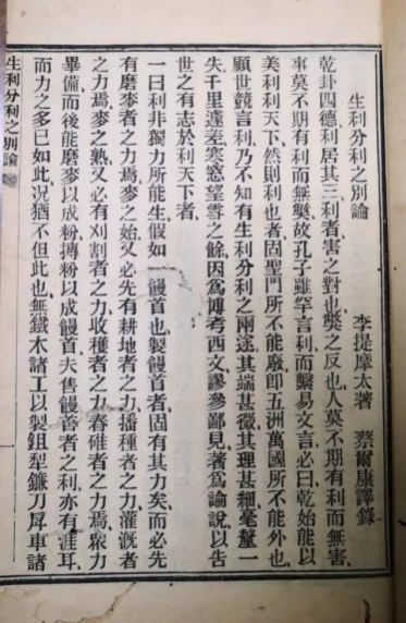 他的著述有《李提摩太在华回忆录》《生利分利之别》、译有《西游记》等100余种,促进了西学在中国的传播。1899年,《万国公报》上连载了李提摩太节译、蔡尔康撰写的《大同学》,该文是对英国资产阶级社会学家颉德所著《社会的进化》一书前四章的节译,译文中首次提到“马克思”的名字:“以百工领袖著名者,英人马克思也。”文中还引用了一段来自《共产党宣言》的文字:“马克思之言曰:纠股办事之人,其权笼罩五洲,突过于君相之范围一国。”这可能是近代中国,最早提到马克思和《共产党宣言》的中译文记载。